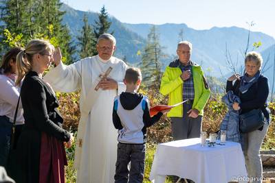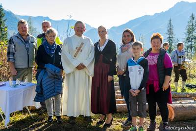 Die Naturfreunde gedachten mit einer kleinen Gedenkfeier an Bgm. Franz Gratzer. Anlässlich des 40. Jahrestages des Naturfreundesteiges erinnerte Herbert Zebenholzer sen. an den großartigen Hollensteiner, der damals in der Vereinsführung über lange Zeit tatkräftig mitarbeitete. Diakon Walter Geißler zelebriete den Gedenkgottesdienst am Grenzbergerkogel. Gerti, Marion, Helmut und Reinhard umrahmten die Feierlichkeit musikalisch.
