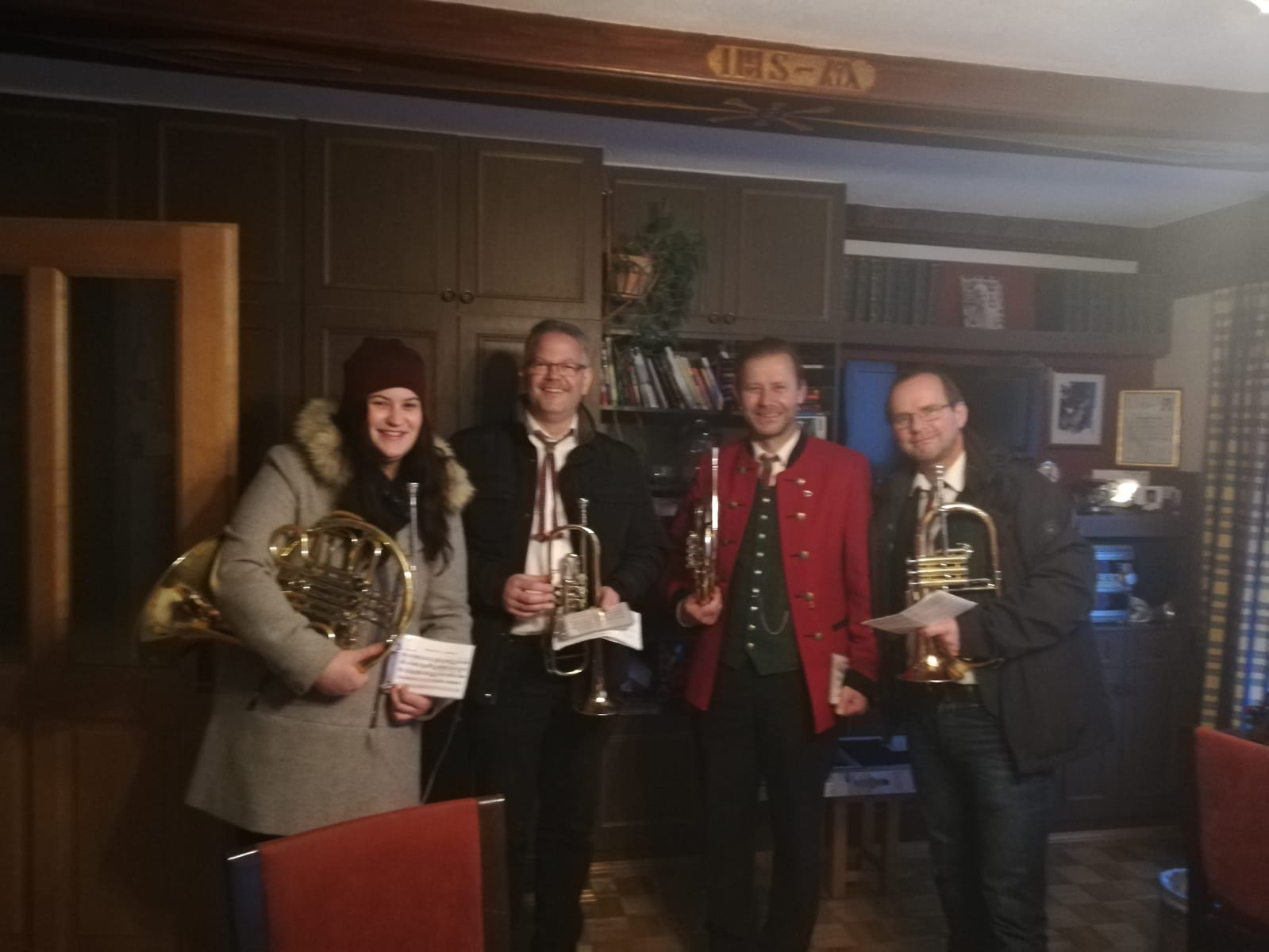 17 kleine Bläsergruppen verbreiteten vorweihnachtliche Stimmung im ganzen Dorf. Mit 56 Musiker und Musikschüler zogen wir von Haus zu Haus und überbrachten die besten Weihnachtswünsche. Gleichzeitig luden wir auch zu unserem Jahreshöhepunkt, dem Weihnachtskonzert am Stefanitag ein. Der Musikverein bedankt sich für die großartige Unterstützung und den zahlreichen Einladungen zu Keksen, Jausen und wärmenden Getränken.