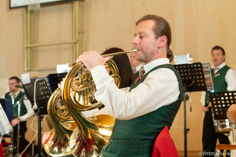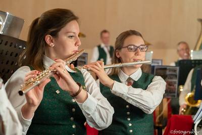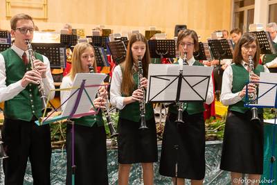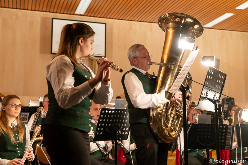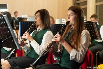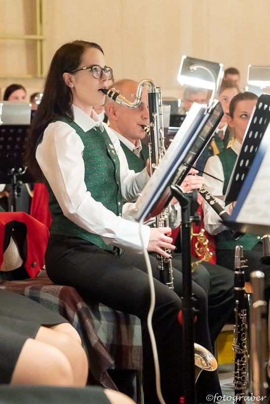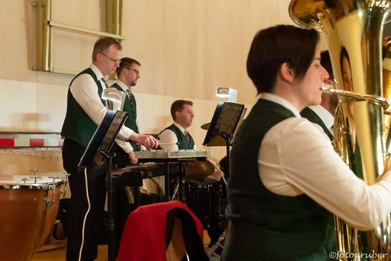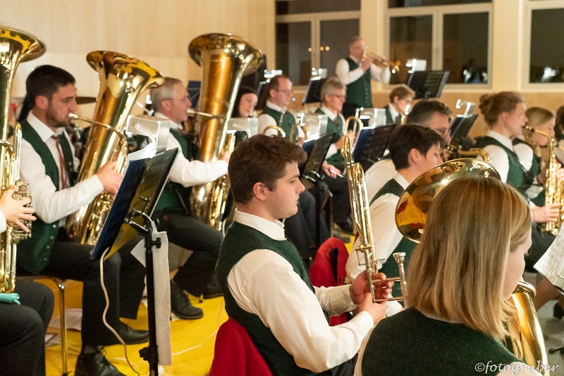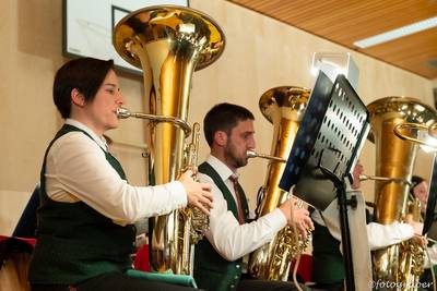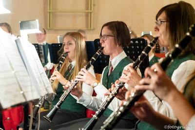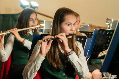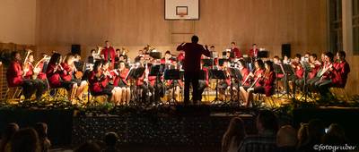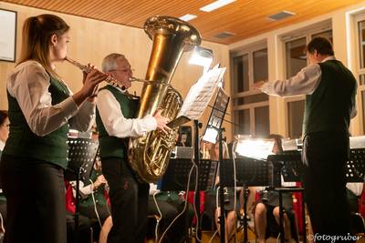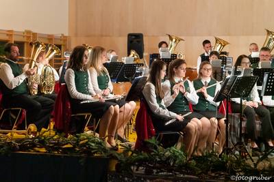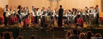 47 Musiker mit einem Altersdurchschnitt von 31 Jahren und ein abwechslungsreiches Programm, quer durch alle Stilrichtungen der Blasmusik, begeisterte das Publikum. Kapellmeister Helmut Sonnleithner studierte mit uns die für´s Konzert perfekte Stückwahl ein. Um nur einige zu nennen: "Slava" von Rimsky-Korsakoff, "Hallelujah" von Leonard Cohen, "Movie Millstones" von Hans Zimmer, "Im Bann der Sterne" Alexander Pfluger. Als Höhepunkt des ersten Teiles präsentierten sich Christiane Filsmair und Herbert Schenk mit dem Bravourstück "Elefant und Mücke", Solo für Querflöte und Kaisertuba.