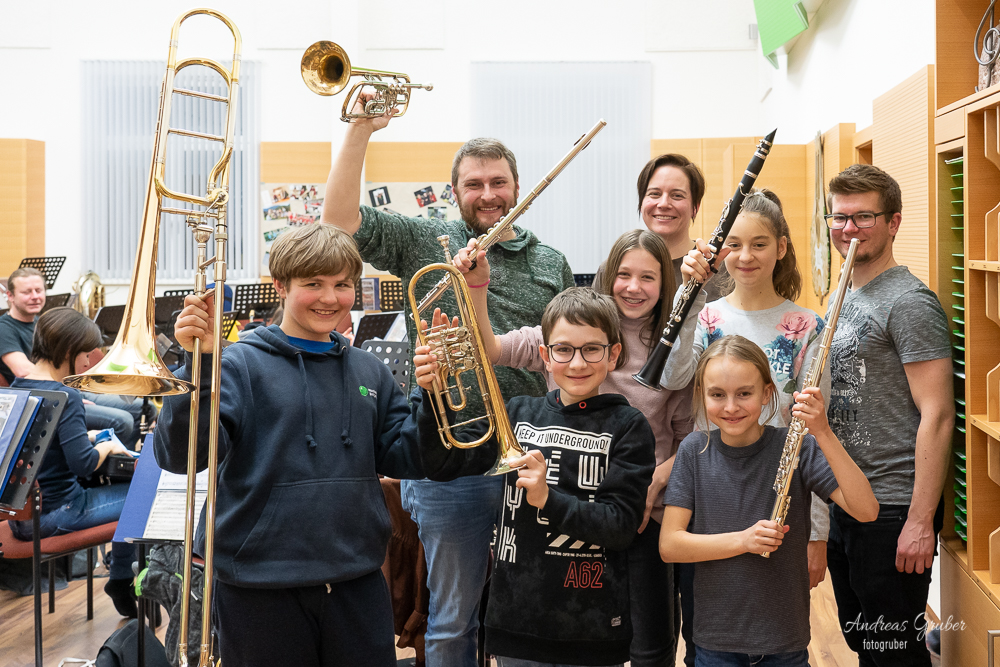 Mit großer Freude und Begeisterung haben wir in der ersten Probe nach der Winterpause sechs neue Musikerkollegen in unseren Kreis aufgenommen. Unsere Obfrau Sabine stellte uns sie jungen Musiker vor. Zum Flötenregister hinzu kommen Simone Jagersberger und Lea Fürnholzer. Hanna Jagersberger ist von nun an bei den Klarinetten mit dabei. David Sonnleitner gibt mit der Posaune sein Bestes. Das Trompetenregister freute sich über zwei Neue. Elias Gratzer gehört jetzt dazu. Mit Christian Wurzenberger ist auch ein Erwachsener neu bei den Trompeten. Er musizierte vor Jahren in St. Georgen an der Leyß. Nach der Babypause swingt Karin Jagersberger wieder aktiv mit ihrem Saxophon in der Kapelle mit. Wir wünschen euch viel Spaß und Freude bei uns.