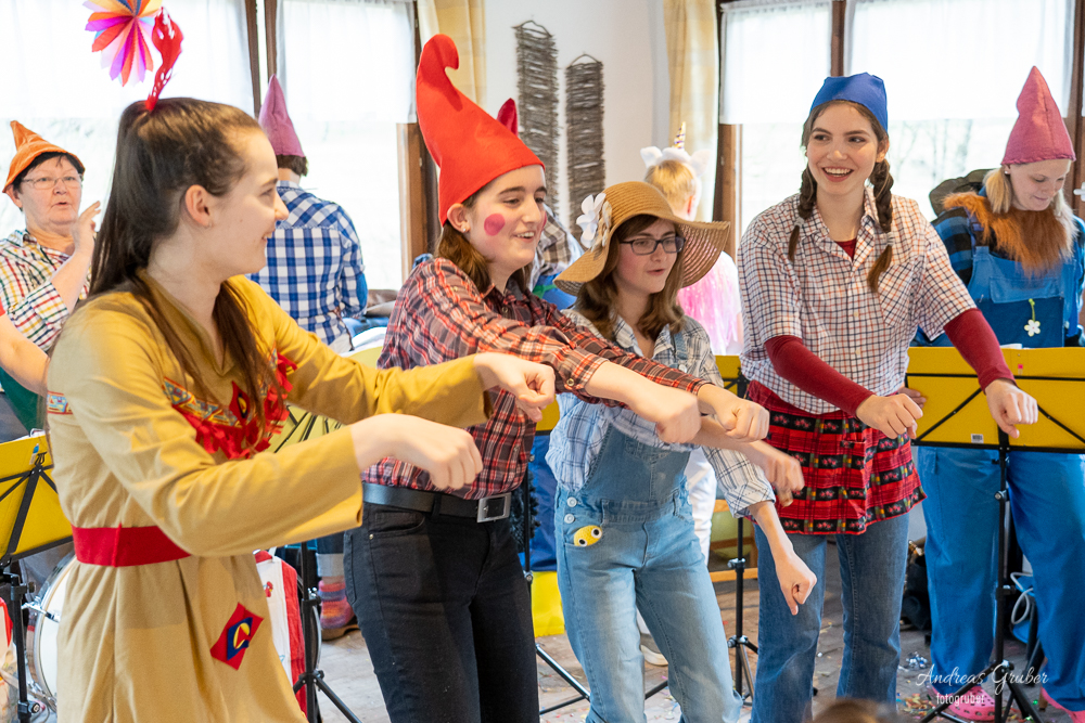 Es war wieder ein toller Kinderfasching im Gasthaus Dornleiten. Danke an Karin für deine perfekte Organisation und danke an alle, die mitgeholfen haben. Musikalisch gestaltete unser "Hea´Haufn" wunderbar den fröhlichen Nachmittag. Sigrid Berginc freute sich über ihren Gewinn vom Schätzspiel, einer köstlichen Zwergenwaldtorte von Konditormeister Hannes Schwarzlmüller. Zu erraten gabs die Anzahl der Noten, die unser Jochen, also unser erster Trompeter, beim Radetzky-Marsch zu spielen hat. Insgesamt sind es 699 Töne.
