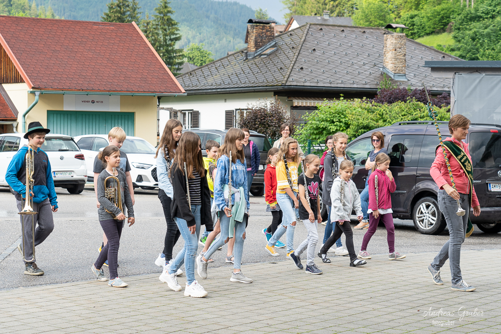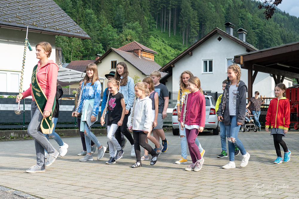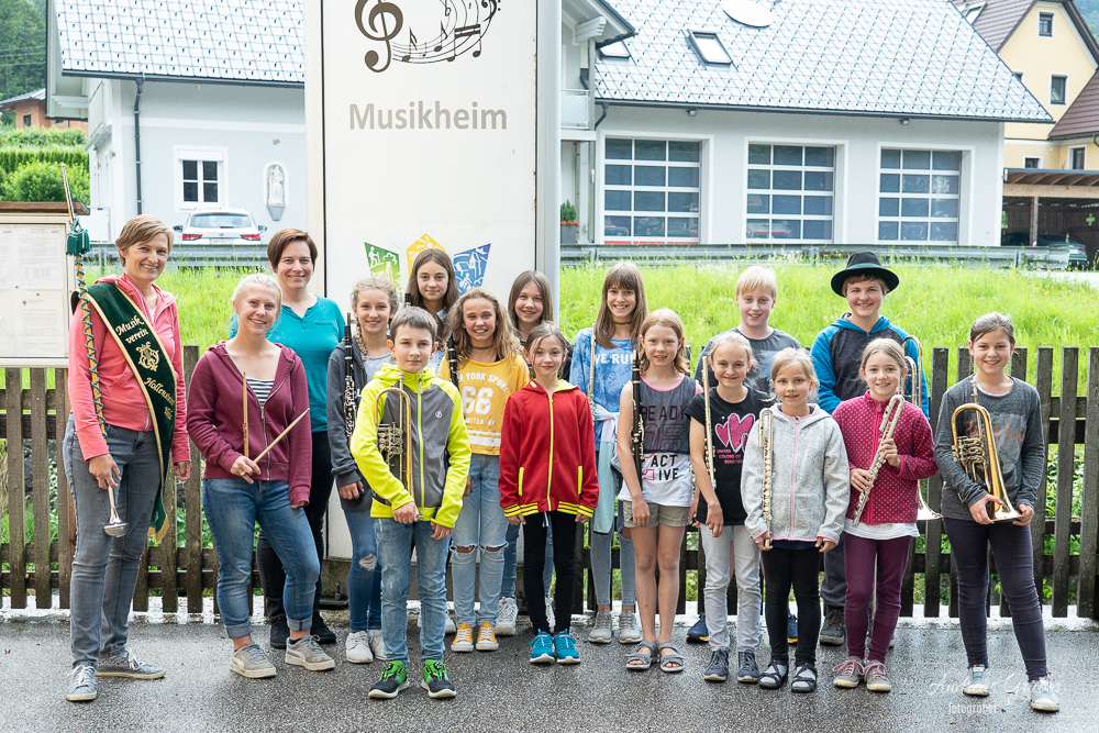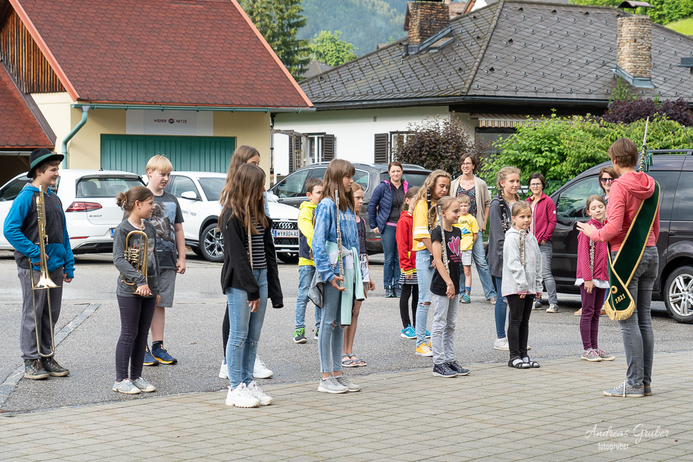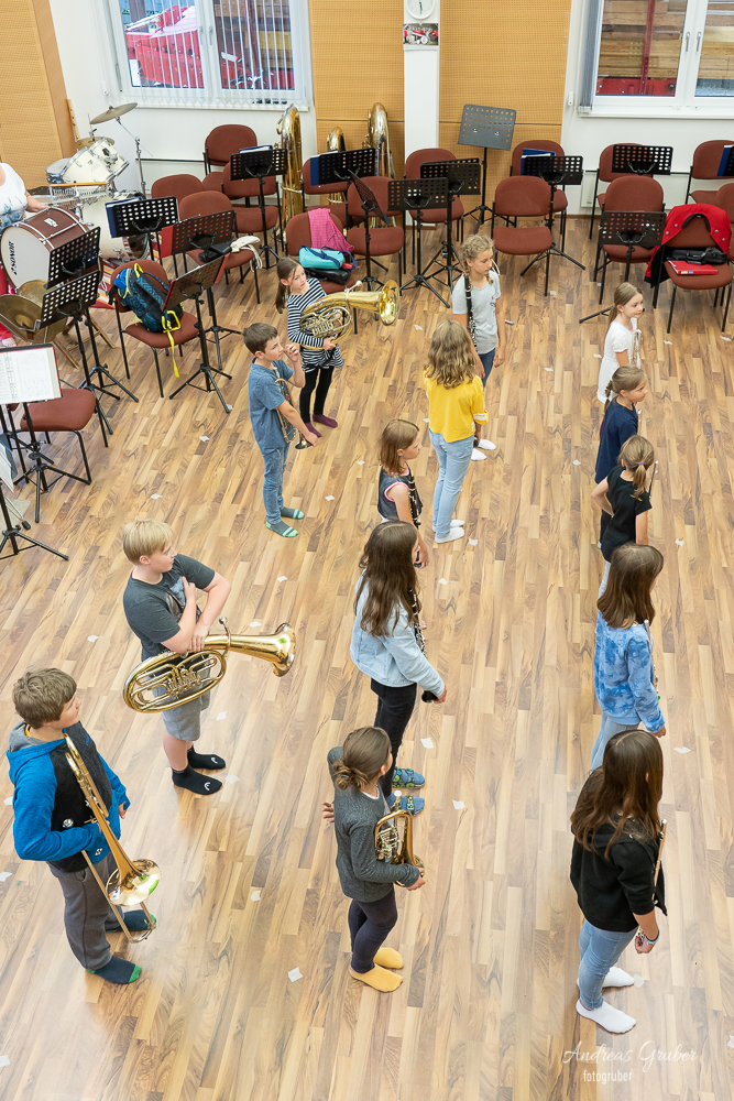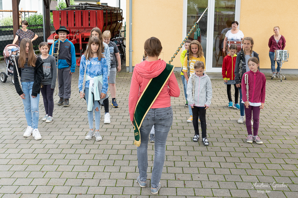 Unser musikalischer Nachwuchs probte unter Stabführerin Michaela die ersten Schritte und wichtigsten Regeln fürs Marschieren in der Kapelle.Unter Beisein von Obfrau Sabine Brandner trafen sich die Kids im Musikheim. Aufgrund leichten Regens übten die eifrigen Jungmusiker zuerst noch im inneren des Probenlokales. Doch das Wetter hatte einsehen. So konnten noch mit jeder Menge Spaß die ersten Runden in Formation am Vorplatz trainiert werden.Beim großen Streifzug des Musikvereines am kommenden Samstag durch das Dorf schnuppern die Kids mit uns Großen mit und es heißt dann für alle, im Schritt Marsch!