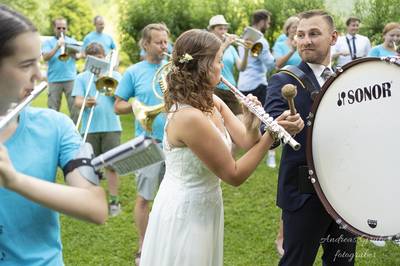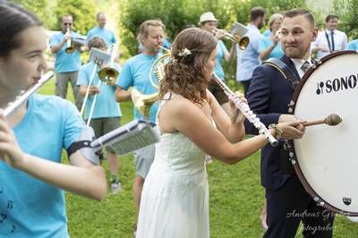 Wir hoffen, unser kleines Stelldichein zu eurer standesamtlichen Hochzeit ist uns gelungen. Wir wünschen euch unendlich viele glückliche Jahre und freuen uns natürlich auf weiterhin viel gemeinsame Stunden mit dir liebe Christiane, als Flötistin bei uns im Musikverein.