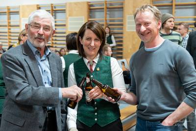 Danke, dass wir mit unserem Konzert in die Schule dürfen: NMS-Dir. Erika Reisinger, Bgm. Manuela Zebenholzer
