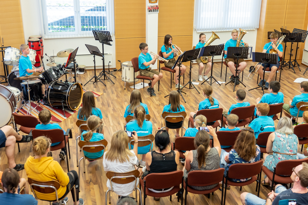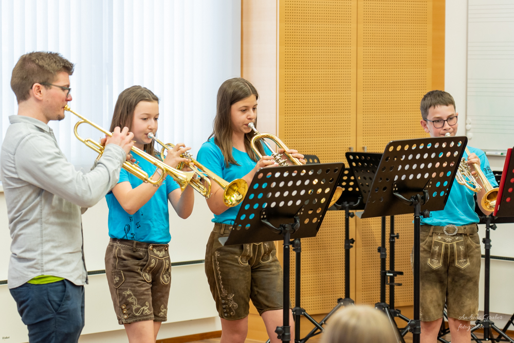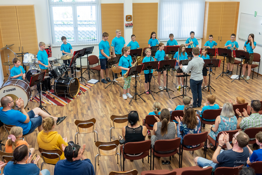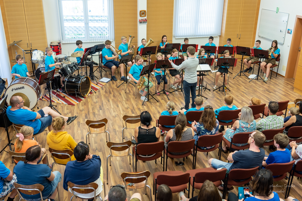 Denn Beginn machte unser Jugendorchester mit tollen, mitreißenden Stücken. Danach stellten sich verschiedenste Ensembles, vom Holz bis zum Blech und den Schlagwerkern, auf die Bühne. Den Vorspielnachmittag beschloss unsere coole Nachwuchsband das "Dorfblech".