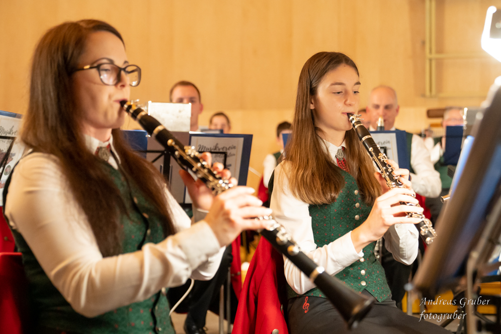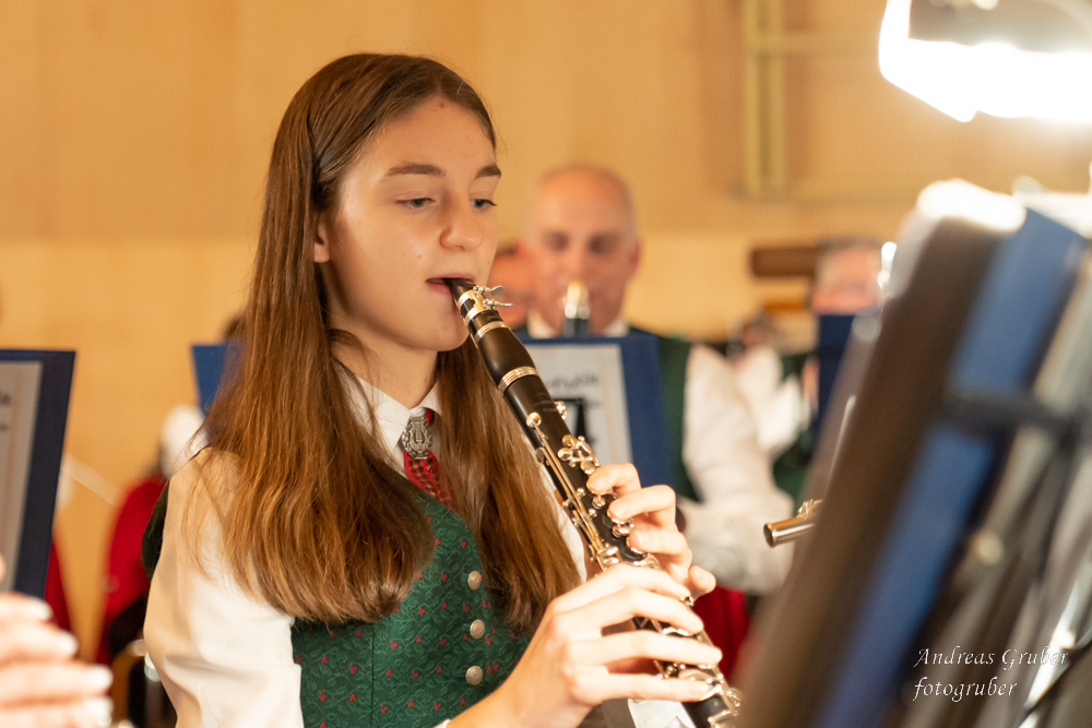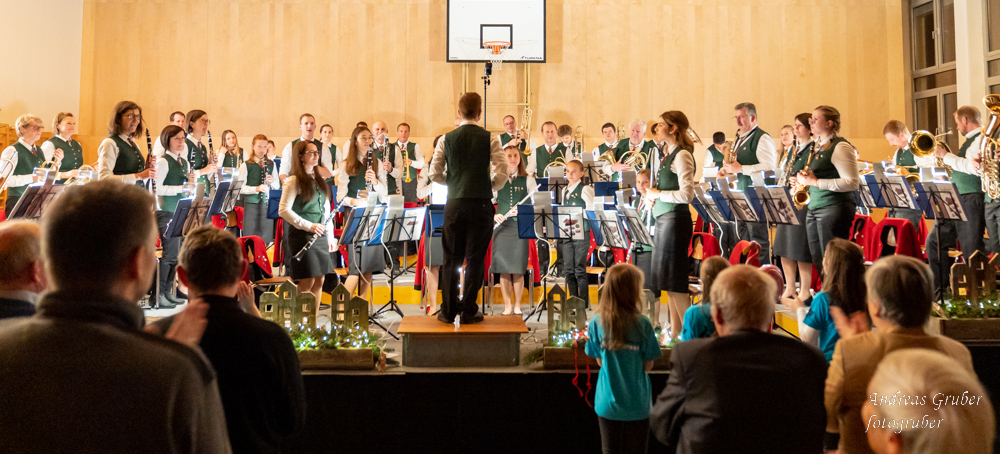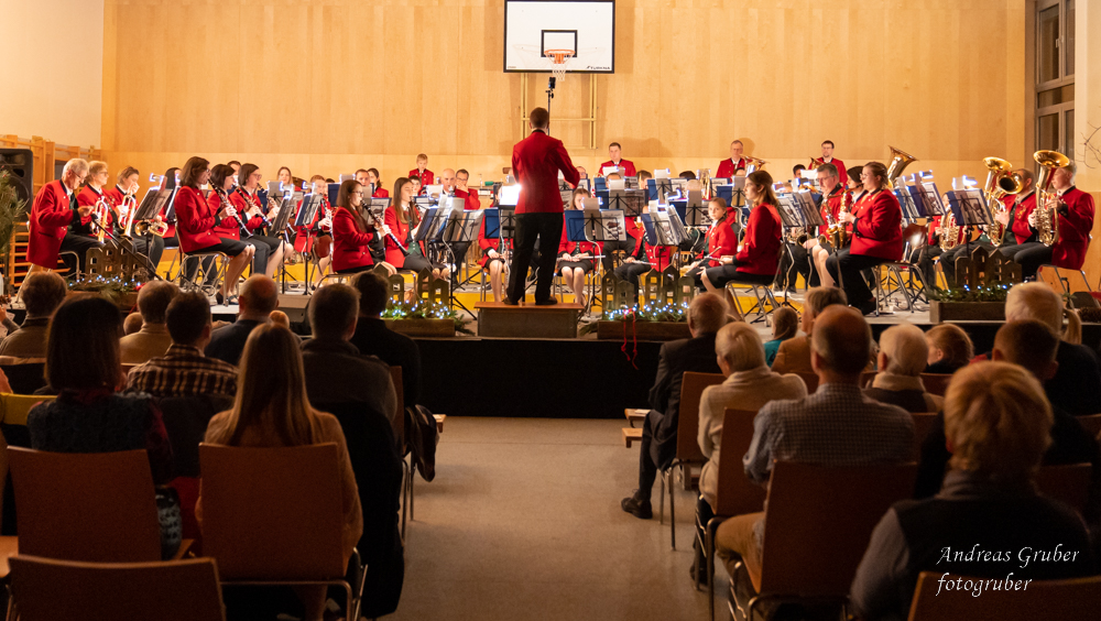 Mit "Carmina Burana" einem überaus imposanten Werk von Karl Orff starteten wir zu unserem traditionellem Termin ins Weihnachtskonzert. Geleitet von David und Ina boten wir herrliche Kompositionen aus vielen Bereichen der Musik. Unsere beiden Wertungsstücke "Monumentum" und "Enjoy the Music", mit denen wir bei der heurigen Konzertwertung einen großartigen Erfolg einspielten, gehörten natürlich dazu. Ina führte uns über den Atlantik zuerst nach Nordamerika mit "Der mit dem Wolf tanzt" in die unendlichen Weiten der Prärie. Mit "Gabriel´ s Oboe", von Ina für Klarinette arrangiert, ging unsere Reise solistisch nach Südamerika. Unser Posaunenquartett holte das Publikum aus der Pause zurück zum begeisternden Auftritt unseres Jugendorchesters. Der "Kaiserin Sissi Marsch" eröffnete den zweiten Teil unseres Konzertabends. Mit der überaus flotten "Fanynka Polka" besuchten wir unsere böhmisch-mährischen Nachbarn. Danach flanierten wir genüsslich mit "Les Champs Elysees" über die Pariser Prachtstraße. Mit dem aktuellen Hit "Merry Christmas" gesungen von unseren Flötistinnen Tina und Carina und arrangiert von Kapellmeister David beendeten wir unser Konzert. Als Zugabe hatten wir "Best of Mark Forster", ebenfalls von David für uns arrangiert, vorbereitet. Mit einem kräftigen "Prosit Neujahr" und dem "Radetzky Marsch" war es dann leider schon vorbei. Ein herzliches Dankeschön an alle, die uns fürs Gelingen unseres Konzertes unterstützt haben. Ein riesiges Danke an unser Publikum für euer Kommen und euren großartigen Applaus!