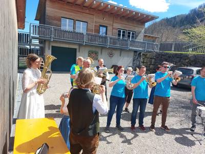 Dass das nicht ohne musikalische Beteiligung von statten gehen kann versteht sich von selbst. Mit der musikalischen Umrahmung von unserem Hea' Haufn hat sie ja gerechnet, aber dass auf dem Weg zum Mittagessen dann noch so manche Hürde zu meistern war, hat sie nicht erwartet.