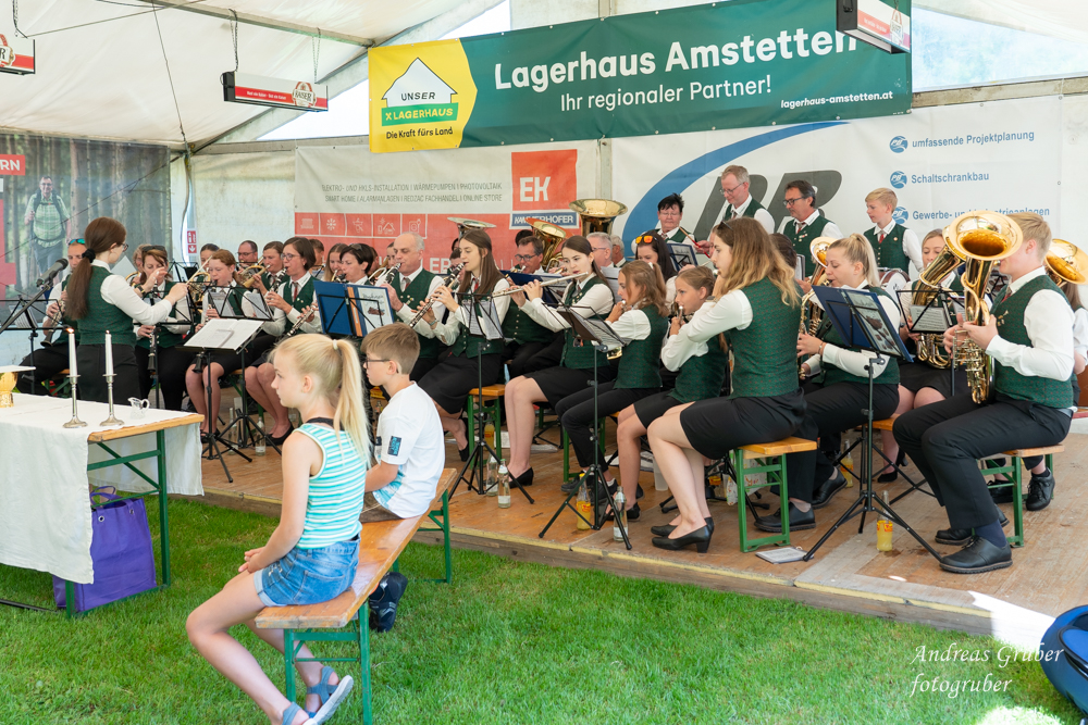 Wir gestalteten bei der zweitägigen Jubiläumsfeier des Sportvereines die Heilige Messe mit der "Missa St. Florian" von Fritz Neuböck unter der Leitung unserer Kapellmeisterstellvertreterin Ina.