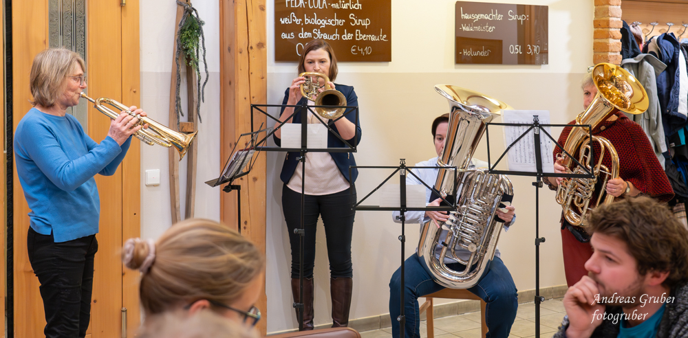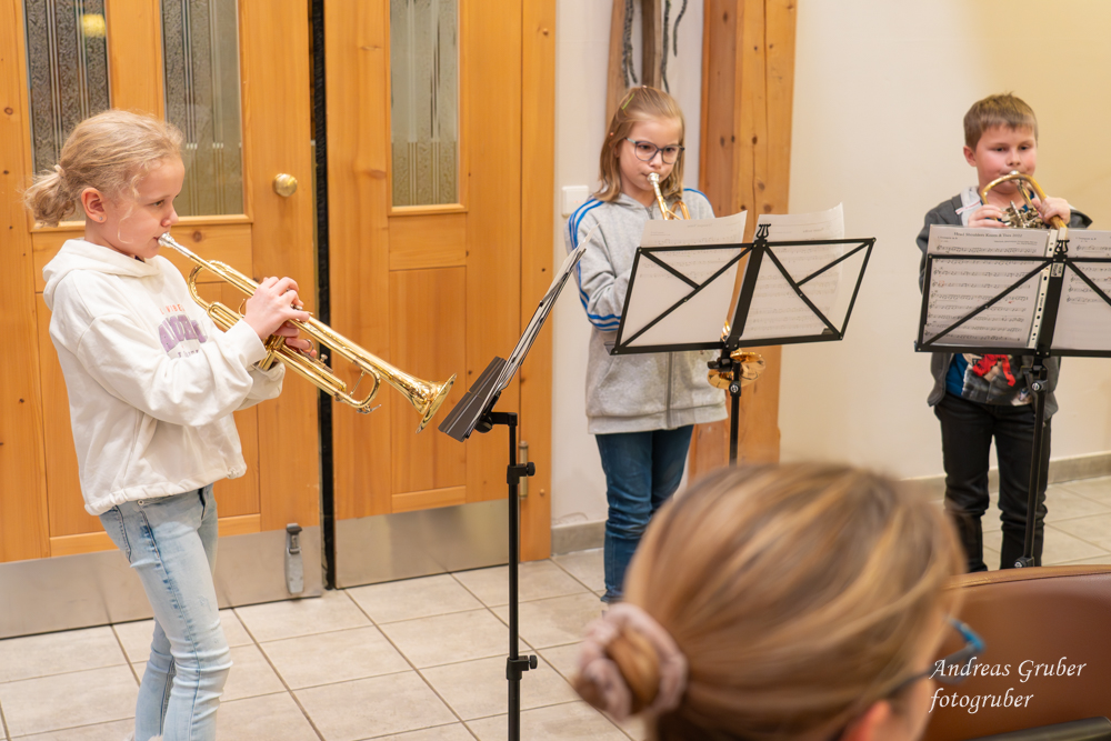 Unsere sechs Marketenderinnen überraschten uns anlässlich der 203. Jahreshauptversammlung mit einem coolen und unterhaltsam getexteten Song. Obfrau Sabine begrüßte im Gasthof Jagersberger uns Aktiven, sowie auch unterstützende Mitglieder. Unsere Schriftführerin Christina ließ uns das abgelaufene, auftrittsintensive Jahr Revue passieren. Kapellmeister David blickte auf ein musikalisch erfolgreiches Jahr zurück. David betonte, dass die Kapelle musikalisch immer besser werde. Einen wesentlichen Beitrag dafür bringen neben der konzentrierten Probenarbeit auch zahlreiche kleine Ensembles, welche sich in den letzten Jahren innerhalb des Vereines formiert haben. David ließ mit der Ankündigung aufhorchen, bei der heurigen Konzertwertung in Stufe C anzutreten. Sabine gab einen Ausblick auf Ausrückungen und Seminare im kommenden Jahr: „Auch wenn wir heuer vorhaben weniger oft aufzutreten, langweilig wird es bestimmt nicht“. Sabine dankte der Kapelle für den super Zusammenhalt und auch ihrem Team im Vorstand, welches zahlreiche Aufgaben übernommen hat und sie dadurch dementsprechend sehr gut entlastete. Ein großer Dank erging an Patricia Sonnleithner, Lukas Mitterhauser und Wolfgang Filsmair, welche aus dem Vorstand des Musikvereines zurücktraten. Sabine überreichte Wolfgang für seine Jahrzehnte lange zuverlässige Arbeit im Vorstand und als gewissenhafter Archivar die goldene Ehrennadel des NÖ Blasmusikverbandes. Bgm. Manuela Zebenholzer zeigte gegenüber der Musik große Wertschätzung und dankte für viele Highlights, wie den gemeinsamen Ausflug zur Partnergemeinde Siegenburg: „Ich bin gerne bei euch und blicke mit großer Freude auf ein neues musikalisches Jahr“. Die Generalversammlung umrahmten unsere kleinen Ensembles.