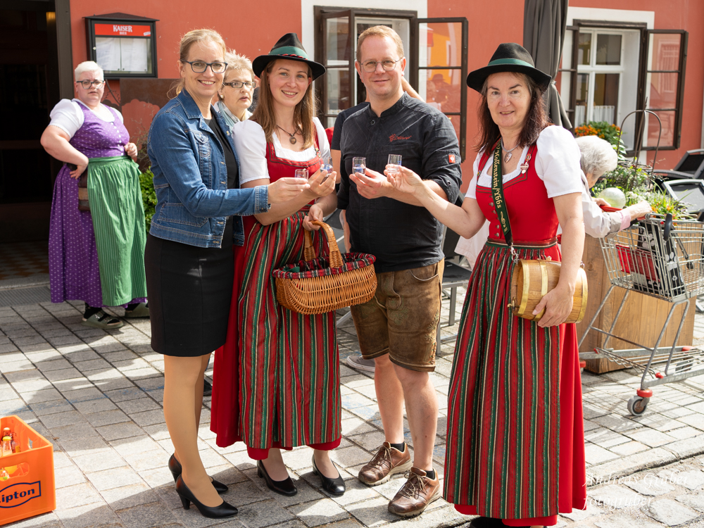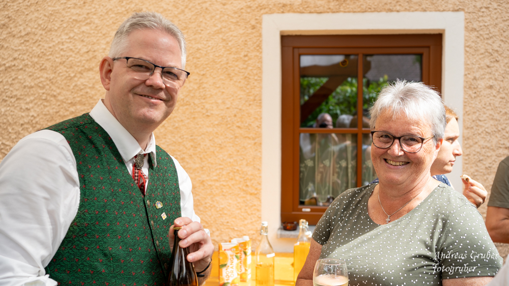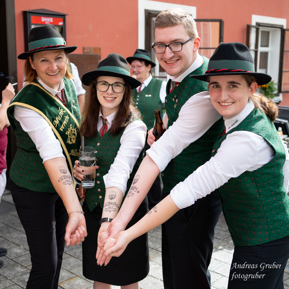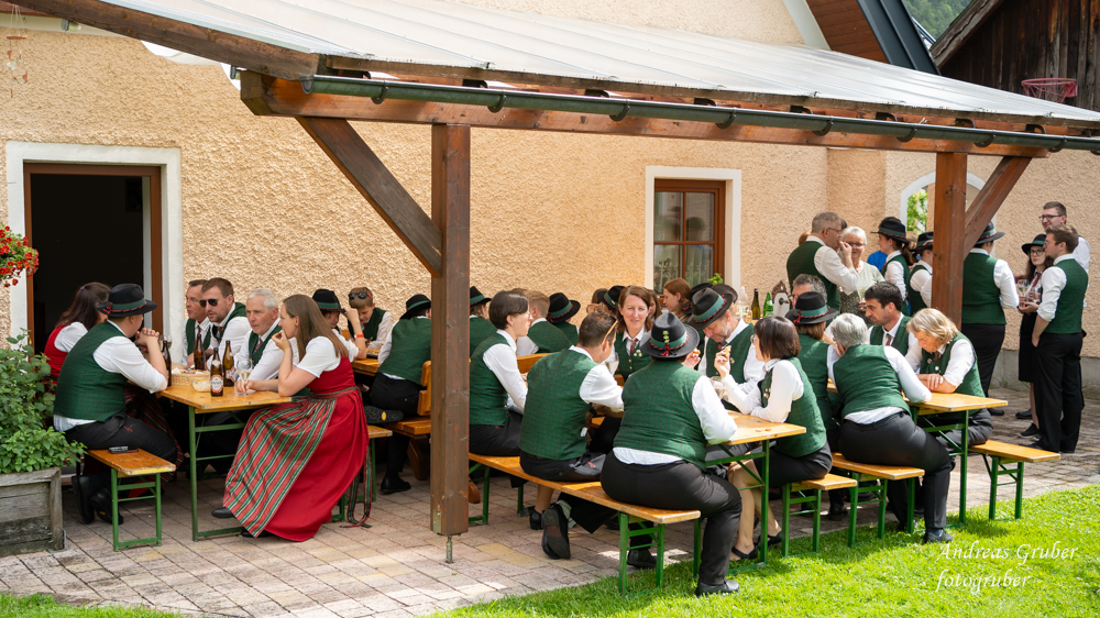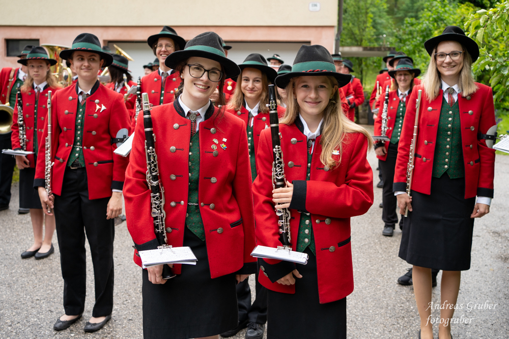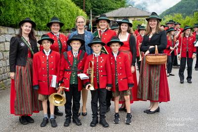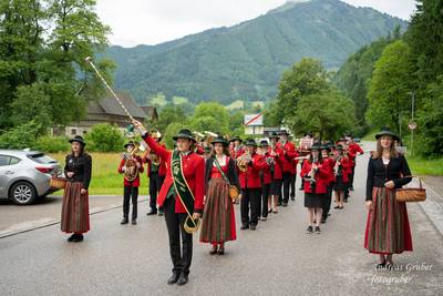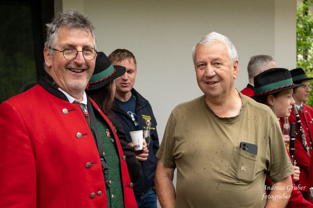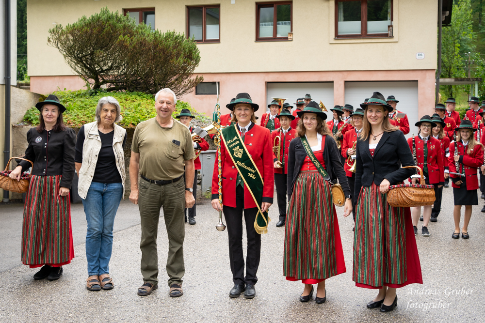 Mit flotter Marschmusik holten mit unserem traditionellen Weckruf das Dorf aus den Träumen. Rund neun Kilometer marschierten wir, angeführt von unserer Michaela am Vatertag durch die Siedlungen. Zahlreiche Einladungen zu kurzen Halts boten uns eine kleine Rast mit willkommenen Erfrischungen. Wir bedanken uns bei den Familien Hubert Mandl und Josef Schnabler für die erste Rast. Eine kurze Pause gönnte wir uns bei Maria Anna und Hermann Jagersberger. Nach einem stärkenden Frühstück im Musikheim freute sich Bgm. Manuela Zebenholzer mit ihrer Familie über den morgendlichen musikalischen Gruß bei ihr zu Hause. Beim Dorfplatzwirt Dominik Fellner Gasthaus Osterberger durfte die Kapelle natürlich nicht vorbeimarschieren und wir erledigten auch gleich unsere Stimmabgabe zur EU-Wahl. Ein großer Dank gilt den beiden Familien Franz und Helmut Paumann. Hier gab es neben den kühlen Erfrischungen auch eine kräftige Jause und Mehlspeisen. Den vorletzten Stopp machten wir bei Vizebgm. Walter Holzknecht und unserem ehemaligen Kapellmeister Christian Gruber. Nach sechs Stunden marschieren durch die Gemeinde schafften wir perfekt zur Mittagszeit unser Ziel. Mit der Einladung zum Mittagessen bei Franziska und Andreas Kronsteiner fand der Weckruf seinen gemütlichen Ausklang.