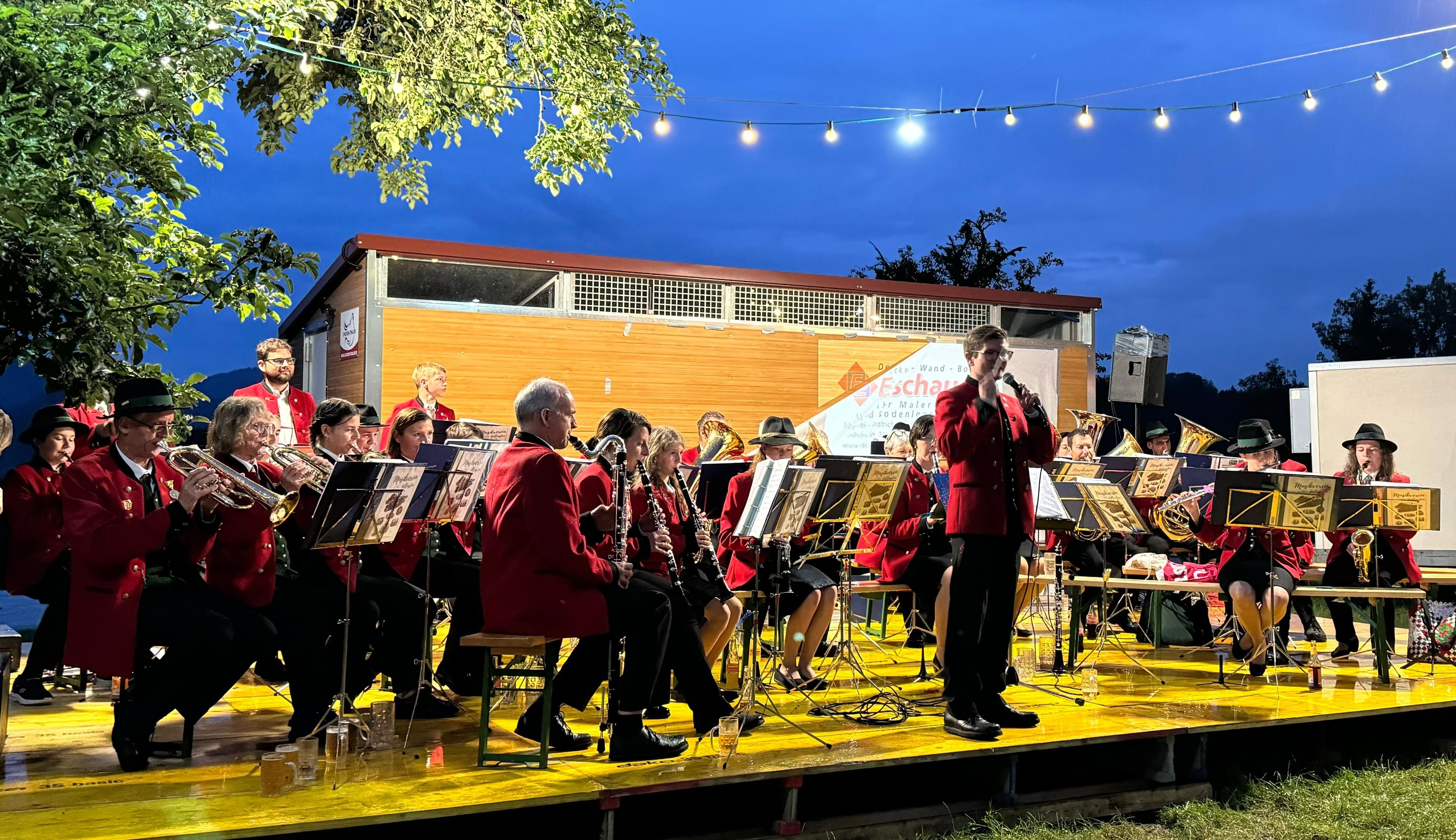 Wir spielten beim Dämmerschoppen der Trachtenmusikkapelle Harmonie Weyer. Beim Eckerbauer nähe der Pfarrkirche verwandelten die Weyrer Musiker rund um Obfrau Petra Leeb den Platz zu einer gemütlichen Sonnwendfeuerlocation. Vor uns spielte die Weyrer Musik auf. Leider machte das Wetter einem vergnüglichen Abend mit viel Blasmusik einen Strich durch die Rechnung und wir mussten unseren Auftritt nach einer Stunde leider schon beenden.