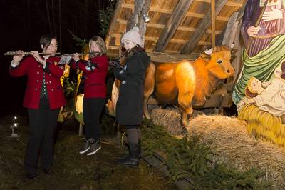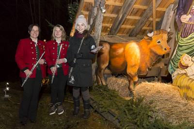Unsere Obfrau Sabine umrahmte mit Hannah und Carina musikalisch eine Kripperlroas der Kripperlrunde.