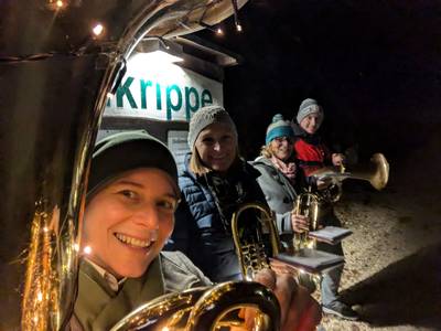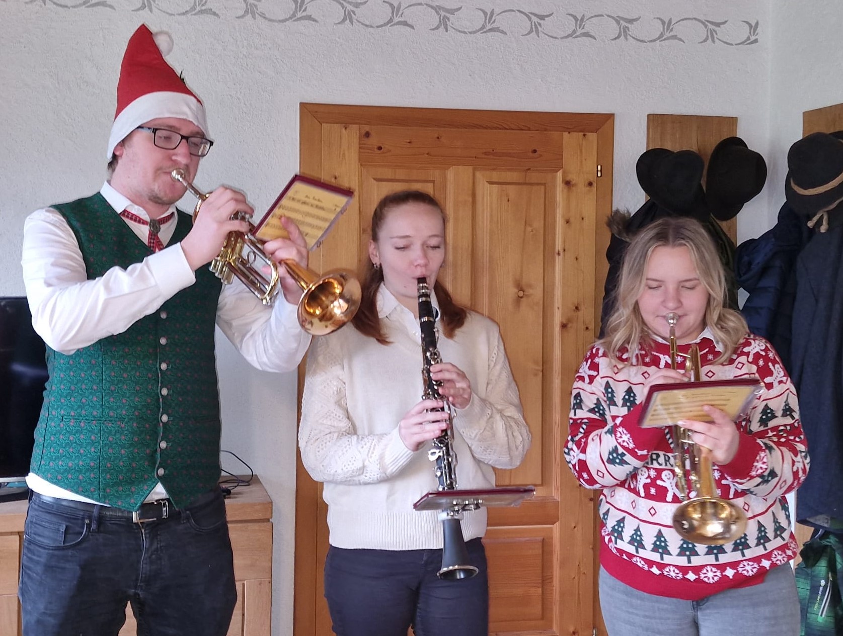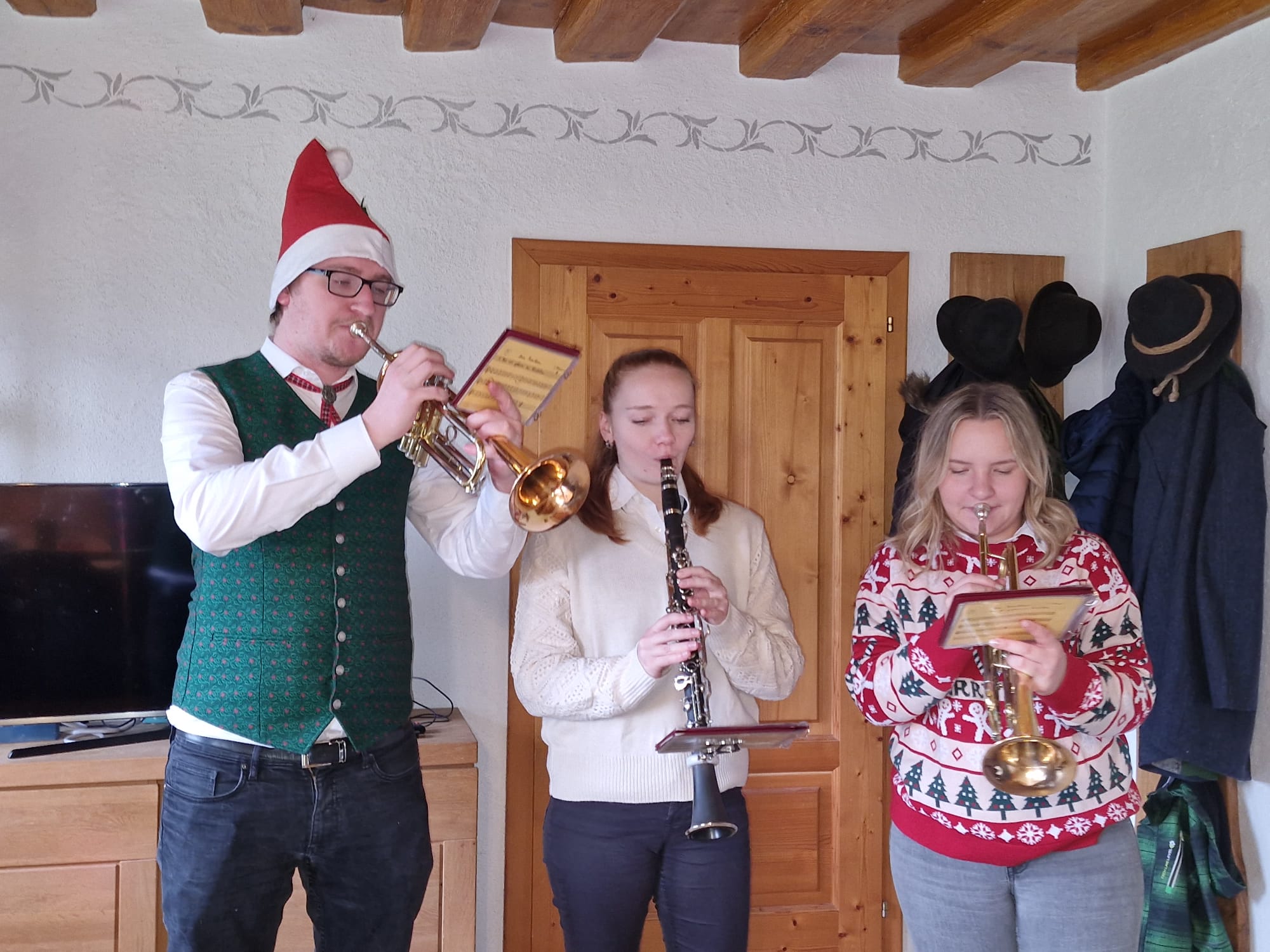 Mit insgesamt siebzehn kleinen Gruppen zogen wir durchs ganze Dorf und verbreiteten vorweihnachtliche Stimmung. Von unserem jüngsten Nachwuchs kräftig unterstützt, konnten wir in sehr vielen Haushalten zu unserem Weihnachtskonzert am Stefanietag einladen. Es ist für uns immer wieder eine große Freude, dass wir mit unseren musikalischen Grüßen bei den Familien so herzlich willkommen sind. Ein herzliches Danke für eure großzügige Unterstützung.