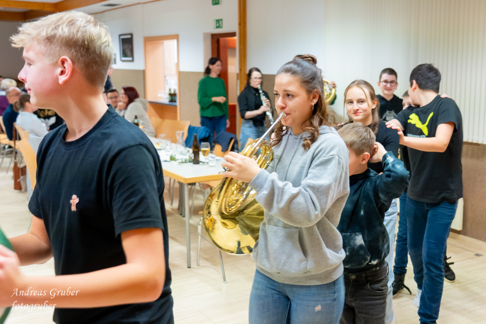 Unsere Obfrau Sabine begrüßte im Vereinsheim uns aktiven, sowie auch unsere unterstützenden Mitglieder zur 204. Jahreshauptversammlung. Allen voran freuten wir uns über den Besuch von Bgm. Manuela Zebenholzer. Schriftführerin Christina Schnabler ließ das abgelaufene Jahr Revue passieren. Unsere Kapellmeisterstellvertreterin Ina blickte auf ein musikalisch erfolgreiches Jahr zurück und betonte, dass das wir musikalisch immer besser werden. Einen wesentlichen Beitrag dafür bringen neben der konzentrierten Probenarbeit auch zahlreiche kleine Ensembles, welche sich in den letzten Jahren gefunden haben. „Eine hervorragende Möglichkeit sich musikalisch weiter zu entwickeln wäre auch die Absolvierung eines Leistungsabzeichen für Erwachsene“, motivierte uns Ina. In Vertretung von Kapellmeister David gratulierte sie uns zur super gelungenen Konzertwertung in der Stufe C. Wir stellten uns ja nach vielen Jahren das erste Mal der Jury in der nächst höheren Wertungsstufe. Ein großes Lob gab es seitens der musikalischen Leitung des Vereines zum Weihnachtskonzert, dem traditionellen Höhepunkt im Vereinsjahr. Obfrau Sabine gab uns einen Ausblick auf das kommende Jahr mit zahlreichen Ausrückungen und Aktivitäten. Sabine dankte für den super Zusammenhalt und blickte mit Begeisterung in die Zukunft: „Mit unserer ausgezeichneten Jugendarbeit werden wir auch weiterhin eine musikalisch schlagkräftige Gruppe bleiben und können uns für das heurige Jahr auf eine schöne Zahl an Neuzugängen zur Kapelle freuen.“ Ein großer Dank erging an Sophie, Karin und Carina, welche aus dem Vorstand des Musikvereines zurücktraten. Ein besonderer Dank erging an Marion. Neun Jahre leitete sie überaus zuverlässig und geschickt als Kassierin unsere finanziellen Geschicke. Bgm. Manuela Zebenholzer übermittelte seitens der Gemeinde einen großen Dank: „Ihr macht so viel Gutes und Schönes für unseren Ort. Was wären unsere zahlreichen Festlichkeiten ohne eurer musikalischen Gestaltung.“ In diesem Sinne versprach die Ortschefin immer ein offenes Ohr und Unterstützung für unszu haben.