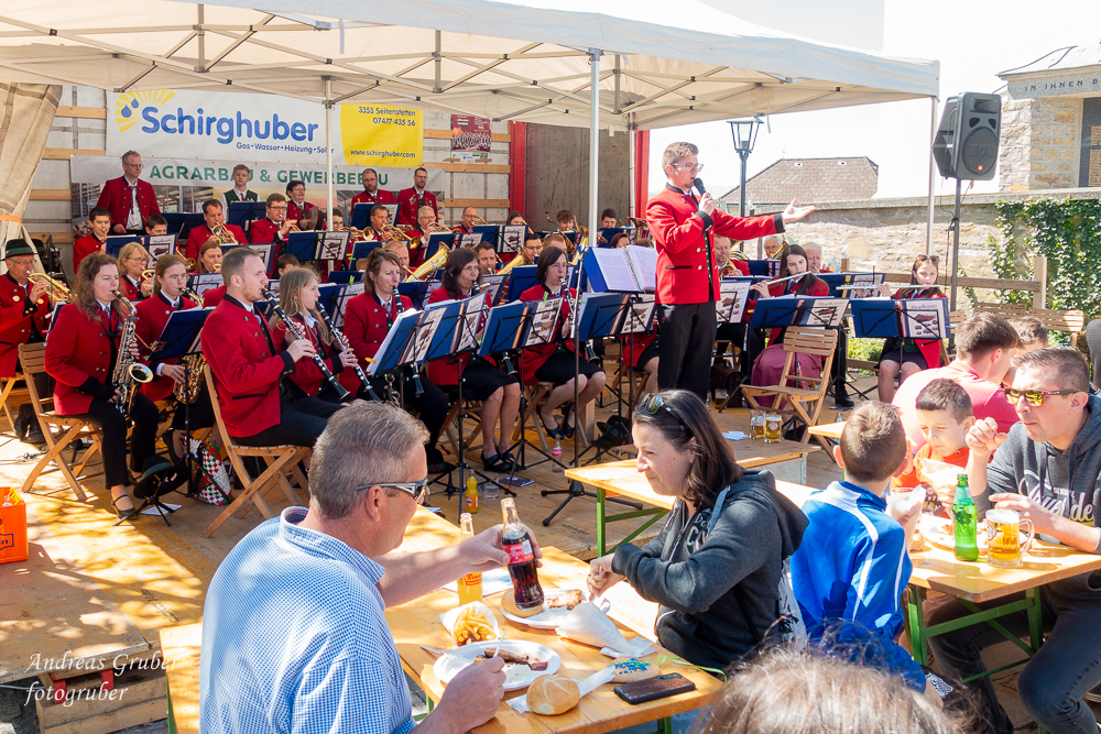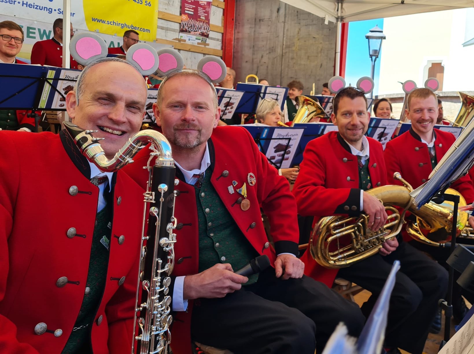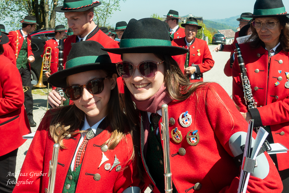 Einen tollen Frühschoppen beim Georgikirtag mit anschließender Pferdesegnung durften wir gestalten. Mit viel Spaß und super Spiellaune begeisterten wir unser zahlreiches Publikum. Am Nachmittag marschierten wir gemeinsam mit der Musikkapelle St. Georgen durch das Festgelände zur Pferdesegnung, welche wir musikalisch mitgestalteten. Ein herzliches Dankeschön an die St. Georgener für die hervorragende Betreuung und Bewirtung. Frühstück, Mittagessen, alles bestens organisiert. Da wir mit dem Bus anreisten, hatten wir Gelegenheit den Kirtag nach unseren Auftritten noch gemütlich zu genießen.