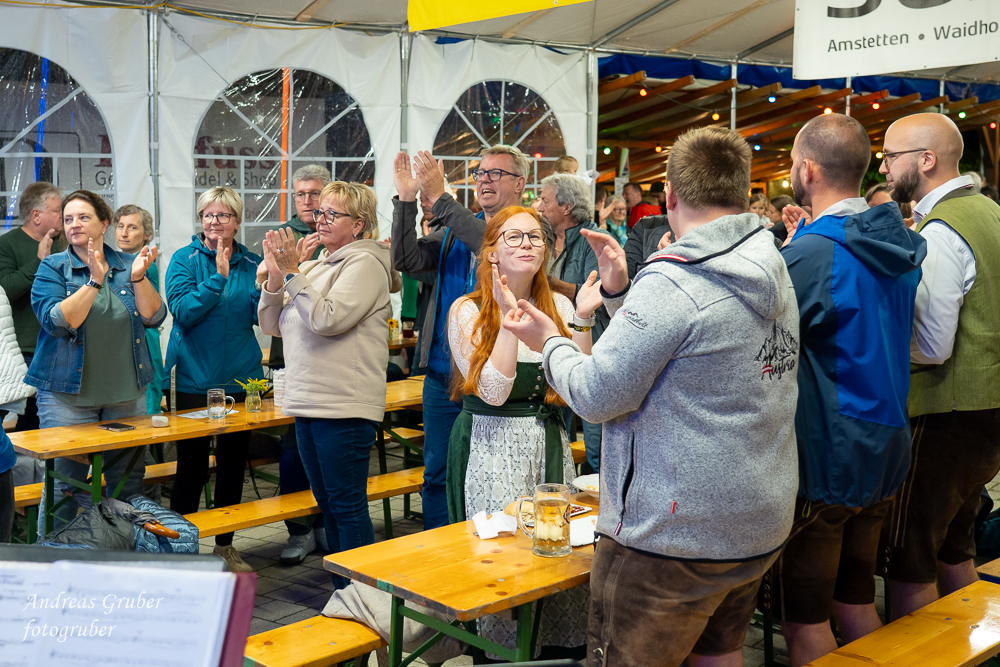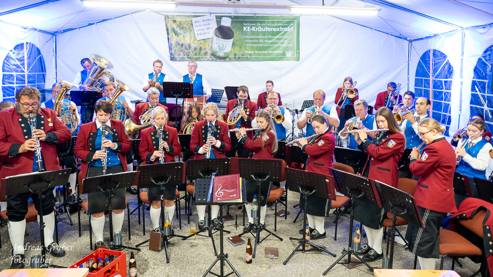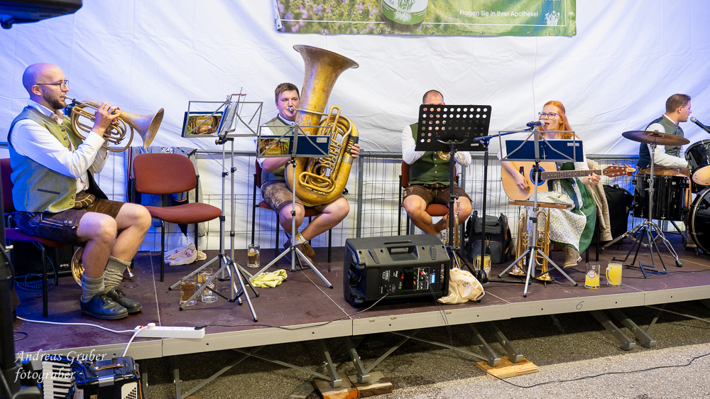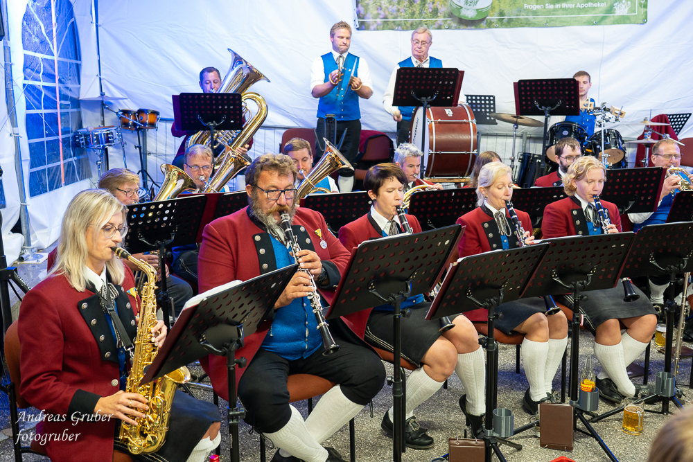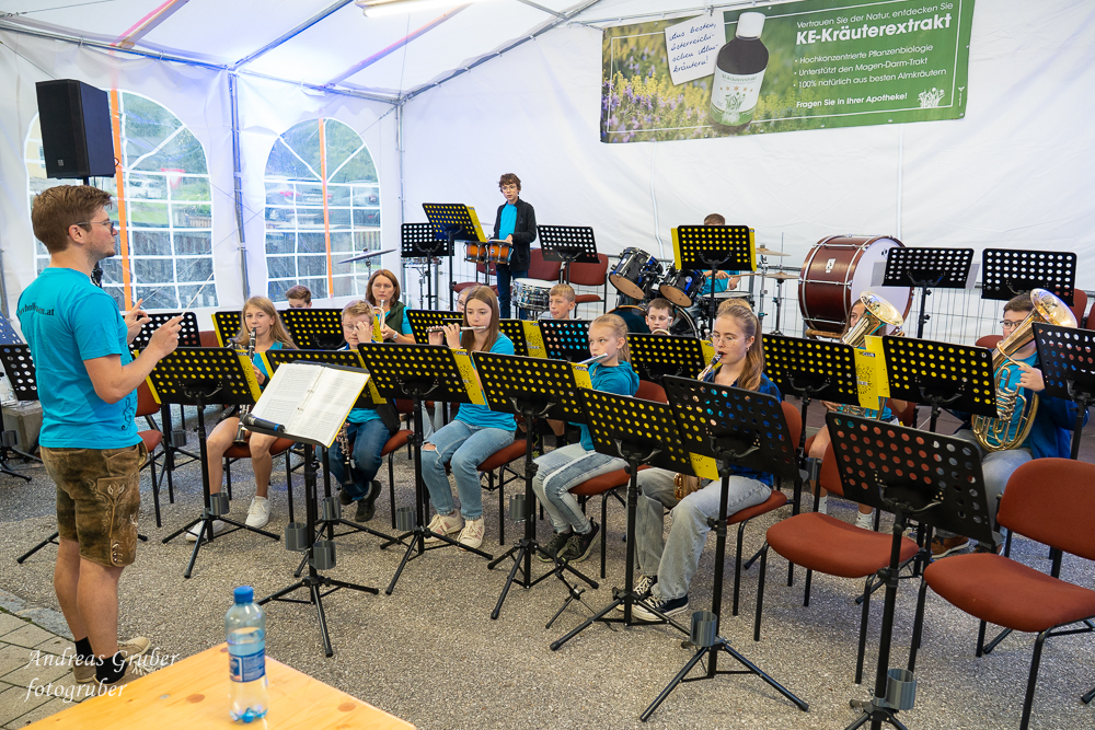 Wir feierten unser traditionelles „Musifest“. Im Festzelt am Vorplatz des Musikheimes trotzten die vielen Besucher den widrigen Wetterbedingungen und genossen hervorragende Blasmusik. Den musikalischen Abend eröffnete unser Jugendorchester. Unter der Leitung von Kapellmeister David Pöchlauer begeisterten die „Youngsters“ das volle Zelt. Danach spielte das „Dorfblech“, unsere Jugendgruppe groß auf. Obfrau Sabine begrüßte am Samstagabend, den 1. August, unsere Gastkapelle aus Opponitz. Mit schwungvoller Blasmusik erspielten sich unsere Musikkollegen aus der Nachbargemeinde tollen Applaus und einiges an Zugaben. Die „Blechnitztaler“ unterhielten mit ausgezeichnetem Sound und abwechslungsreicher Musik bis spät in die Nacht hinein. Hollensteins Linedancegruppe rund um Erika Buchriegler sorgte für tänzerische Unterhaltung am Musifest. Obfrau Sabine gratulierte im Rahmen des Festes zahlreichen Jungmusikern zum Leistungsabzeichen in Bronze und Silber. Im Besonderen würdigte sie Marlene Lueger. Marlene absolvierte vor Kurzem auf ihrer Querflöte das Abzeichen in Gold mit ausgezeichnetem Erfolg und vertieft zurzeit ihr musikalisches Können bei der Militärmusik Niederösterreich. Sabine überraschte Waltraud Schneiber mit dem goldenen Marketenderinnenabzeichen. Die Café-Lounge und die Cocktail-Bar mit Südseeflair rundeten das kulinarische Angebot unseres Musifests genussvoll ab. Bgm. Manuela Zebenholzer gratulierte uns zum gelungenen Fest und dankte den Musikern für deren musikalisches Engagement bei zahlreichen Auftritten und Veranstaltungen im Dorf.
