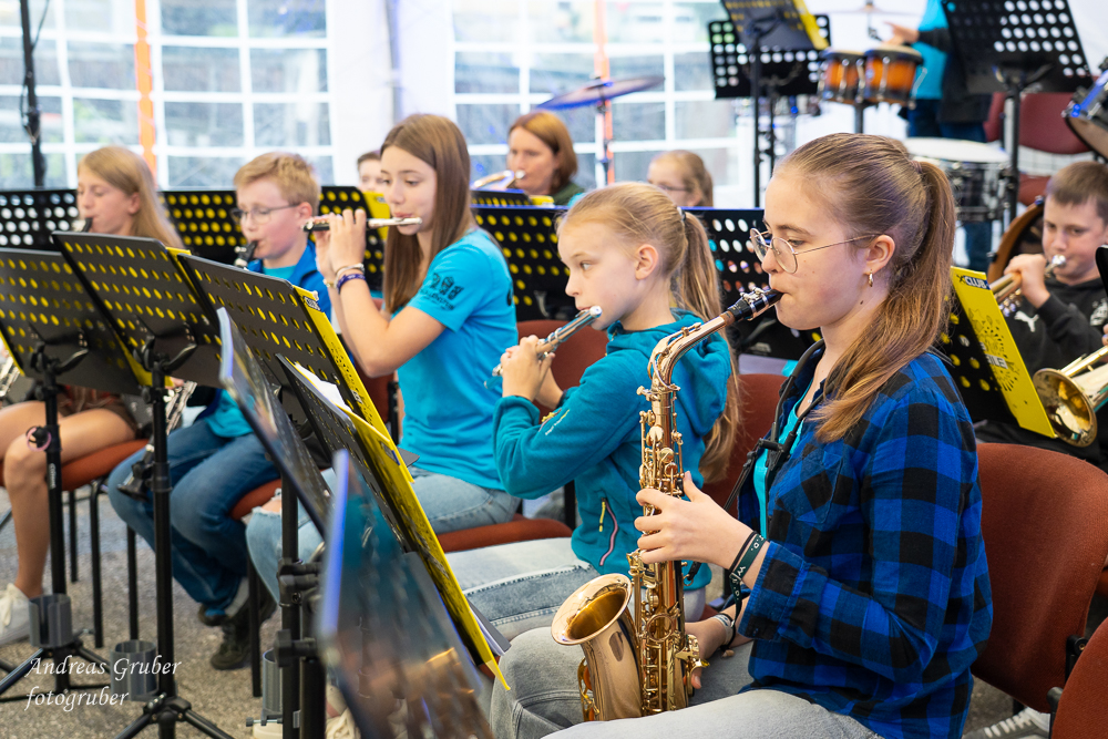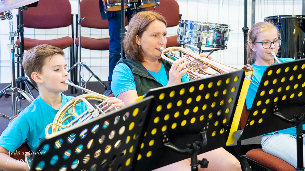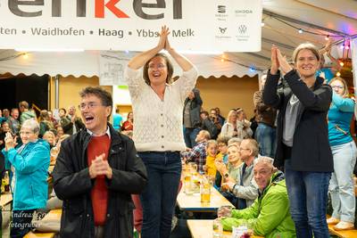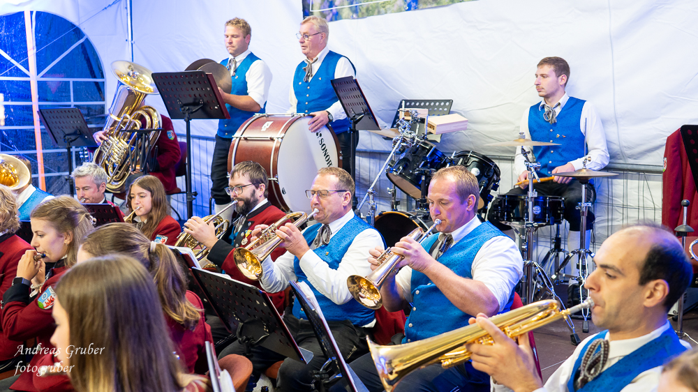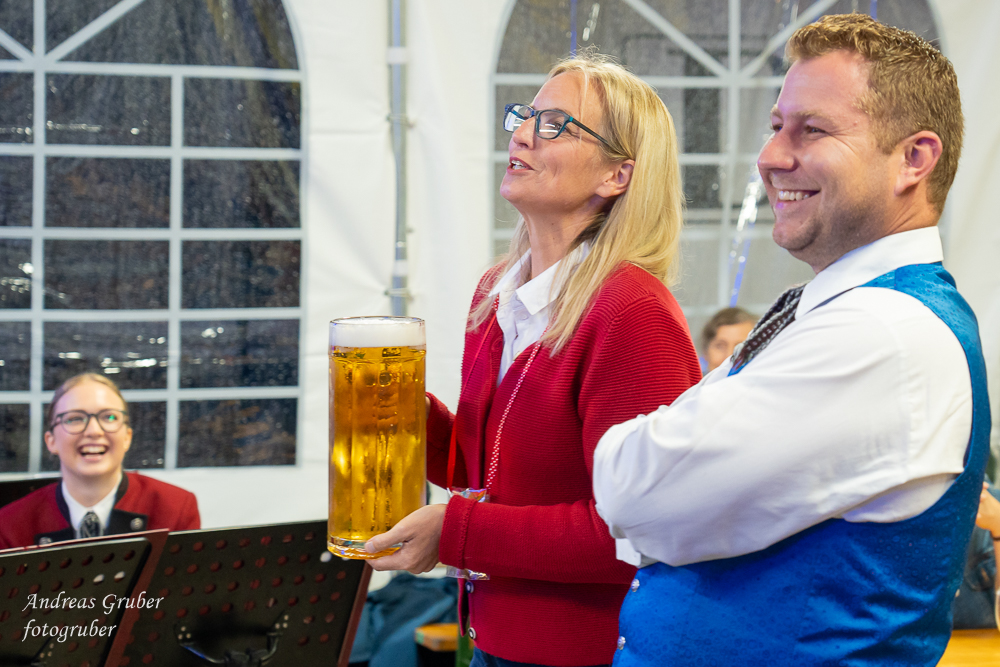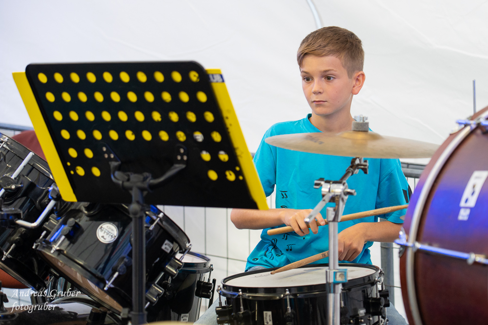Wir feierten unser traditionelles „Musifest“. Im Festzelt am Vorplatz des Musikheimes trotzten die vielen Besucher den widrigen Wetterbedingungen und genossen hervorragende Blasmusik. Den musikalischen Abend eröffnete unser Jugendorchester. Unter der Leitung von Kapellmeister David Pöchlauer begeisterten die „Youngsters“ das volle Zelt. Danach spielte das „Dorfblech“, unsere Jugendgruppe groß auf. Obfrau Sabine begrüßte am Samstagabend, den 1. August, unsere Gastkapelle aus Opponitz. Mit schwungvoller Blasmusik erspielten sich unsere Musikkollegen aus der Nachbargemeinde tollen Applaus und einiges an Zugaben. Die „Blechnitztaler“ unterhielten mit ausgezeichnetem Sound und abwechslungsreicher Musik bis spät in die Nacht hinein. Hollensteins Linedancegruppe rund um Erika Buchriegler sorgte für tänzerische Unterhaltung am Musifest. Obfrau Sabine gratulierte im Rahmen des Festes zahlreichen Jungmusikern zum Leistungsabzeichen in Bronze und Silber. Im Besonderen würdigte sie Marlene Lueger. Marlene absolvierte vor Kurzem auf ihrer Querflöte das Abzeichen in Gold mit ausgezeichnetem Erfolg und vertieft zurzeit ihr musikalisches Können bei der Militärmusik Niederösterreich. Sabine überraschte Waltraud Schneiber mit dem goldenen Marketenderinnenabzeichen. Die Café-Lounge und die Cocktail-Bar mit Südseeflair rundeten das kulinarische Angebot unseres Musifests genussvoll ab. Bgm. Manuela Zebenholzer gratulierte uns zum gelungenen Fest und dankte den Musikern für deren musikalisches Engagement bei zahlreichen Auftritten und Veranstaltungen im Dorf.