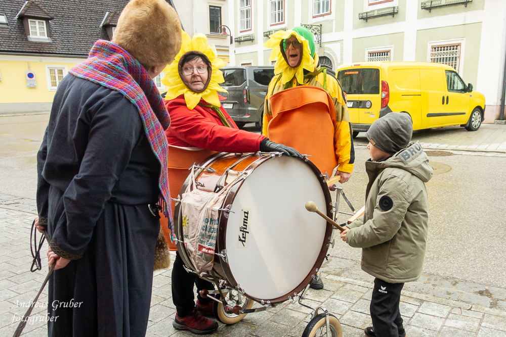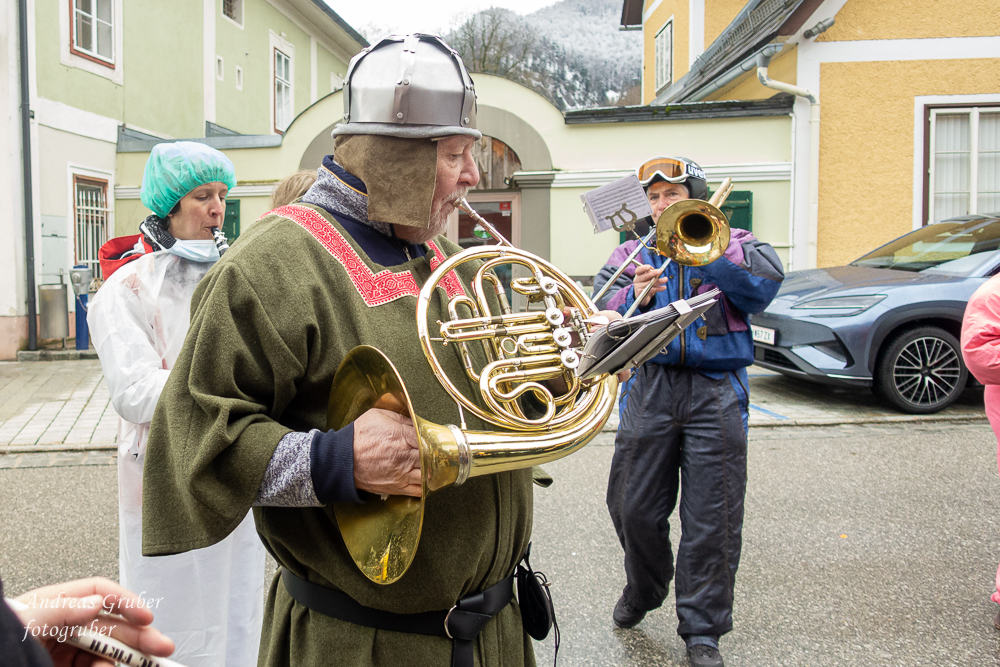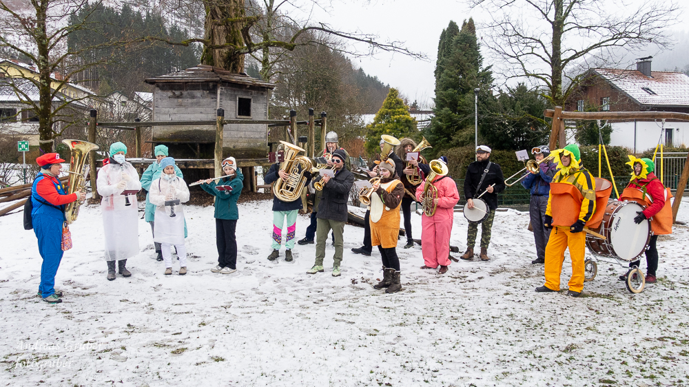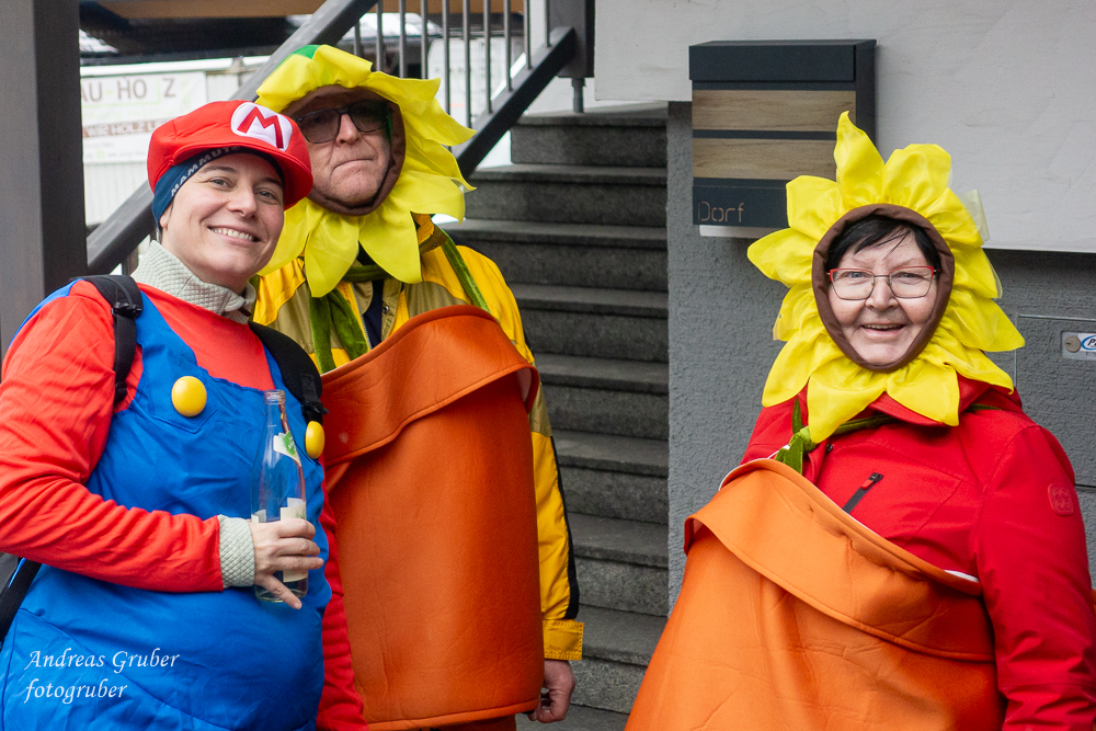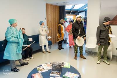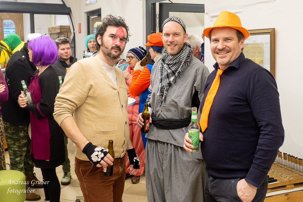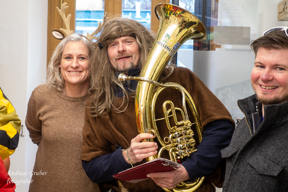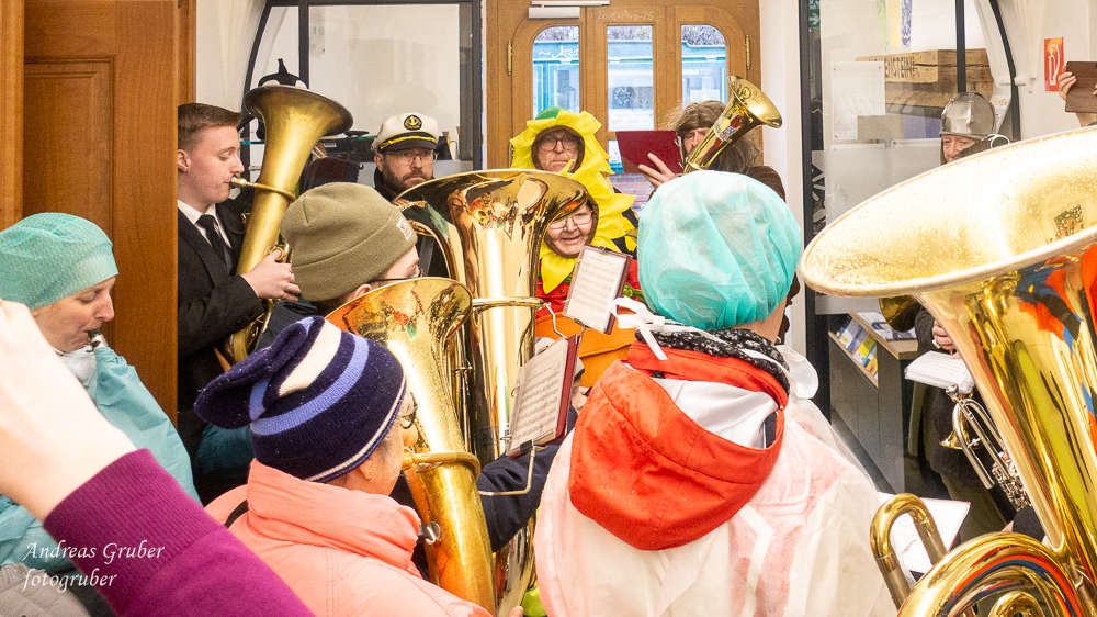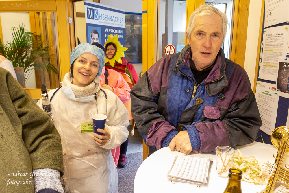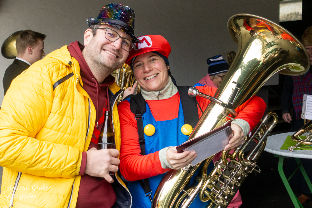 Topmotiviert zogen wir musikalischen Faschingsnarren durchs Dorf. Auf Grund der schlechten Witterung fiel der gemeinsame Einzug in den Dorfplatz mit den Kindern aus dem Kindergarten und der Schule ins Wasser. So galt unser erster Besuch unseren Jüngsten. Im Kindergarten empfing man uns mit fröhlichen Liedern und Darbietungen. Danach gabs einen kurzen Zwischenstopp in der Praxis unseres Zahnarztes, inklusiver Notfallbehandlung. Im Turnsaal der Mittelschule gings dann richtig zur Sache. Mit musikalischen Hits und coolen Tänzen steppte der Bär. Zurück im Dorf Stationen beim Gasthaus Osterberger, Versicherungsmakler Seisenbacher, Rathaus, Spar Gratzer und PlanBauHolz. Den fröhlichen Ausklang feierten wir im Gasthaus Osterberger.