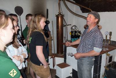 Wir fuhren am Samstag um 7.30 (zur Freude unserer Obfrau pünktlichst) vom Musikheim in Hollenstein weg. Mit 37 Musikern war unsere Kapelle gut aufgestellt und die Fahrt bis wir dann um 16 Uhr in Stanz ankamen wurde uns beinahe ununterbrochen durch Live-Musik (von Sepp, Flo, Steindler, Reini, Sophie,.....) versüßt. Die Musiker des MV Stanz haben uns mit einer Jause empfangen, die direkt in der Besichtigung einer Schnaps-Brennerei mündete. Nachdem Stanz bei ca 600 Einwohnern ungefähr 60 Brennerein vorweisen kann, war klar, dass es auch unter den Musikanten echte Könner auf diesem Gebiet gibt. Der eine oder andere Hollensteiner Musiker hat in diesem Zusammenhang auch gleich an die Reserven zuhause gedacht und sich mit so machen Fläschchen selbst eine Freude gemacht.