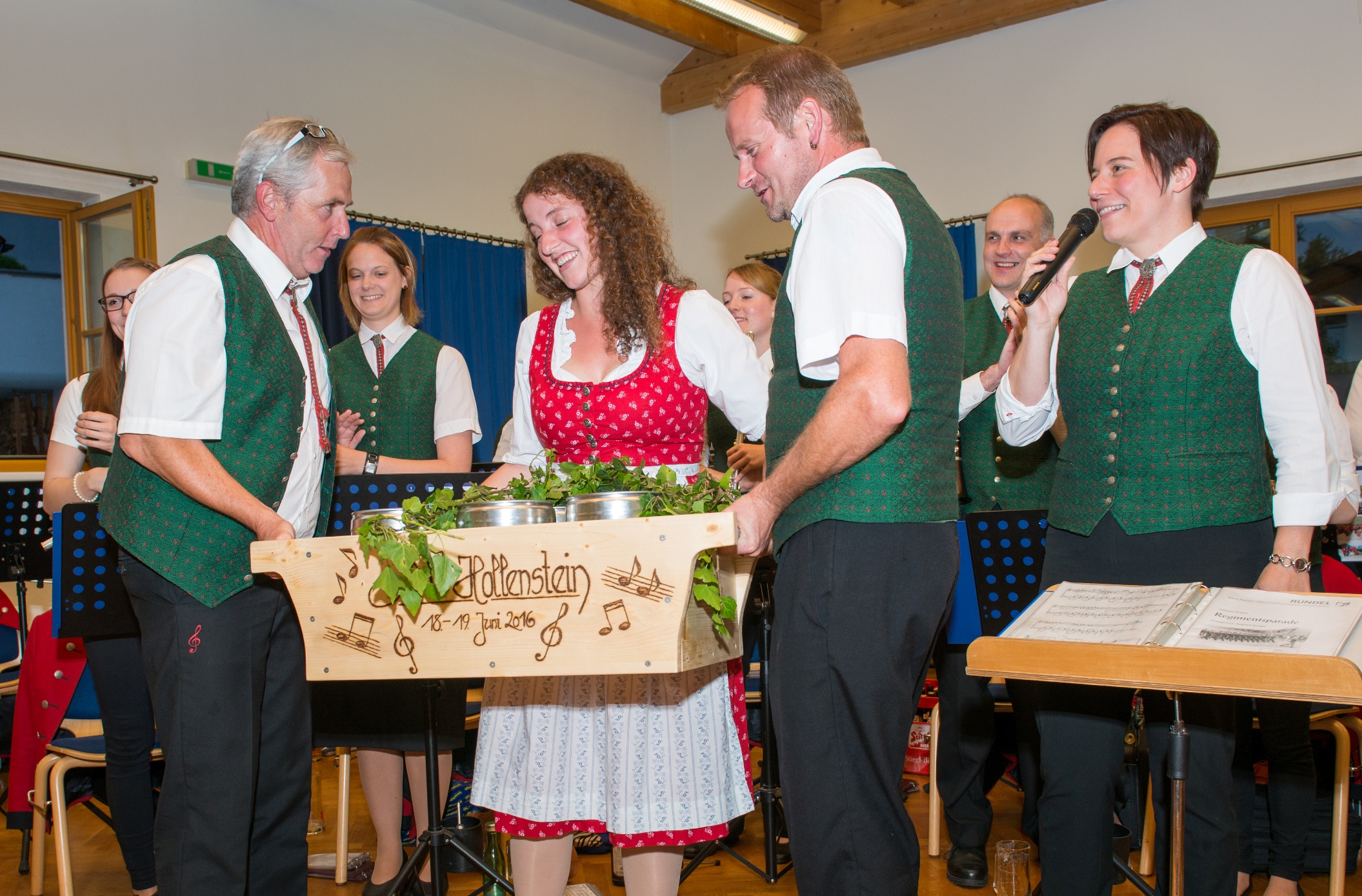 Danach ging es ab zu den Gastfamilien, dort hieß es umziehen um dann möglichst rasch im Gemeindesaal wieder zusammenzutreffen. Von 19 bis 21 Uhr durften wir bei einem Dämmerschoppen mit 38 Musikern unser Können unter Beweis stellen. Die wundersame Vermehrung werden sie vielleicht denken? Nein, unsere Anna Pichler hat keine Mühen gescheut und ist direkt von ihrem Praktikum in Südtirol nach Stanz gekommen.