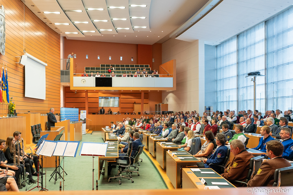 Auf Einladung unserer Landeshauptfrau Johanna Mikl-Leitner gab es einen kleinen Ausflug ins Landhaus nach St. Pölten. Im Rahmen einer stimmungsvollen Feier bekamen wir den Ehrenpreis in Silber überreicht. Begleitet hat uns unsere Bgm. Manuela Zebenholzer. Im Landhaus trafen wir unsere Kollegen vom Musikverein St. Georgen am Reith mit Kapellmeister Siegfried Rabl, Obmann Franz Hager, Siegfried Aigner und Bgm. Birgit Krifter.